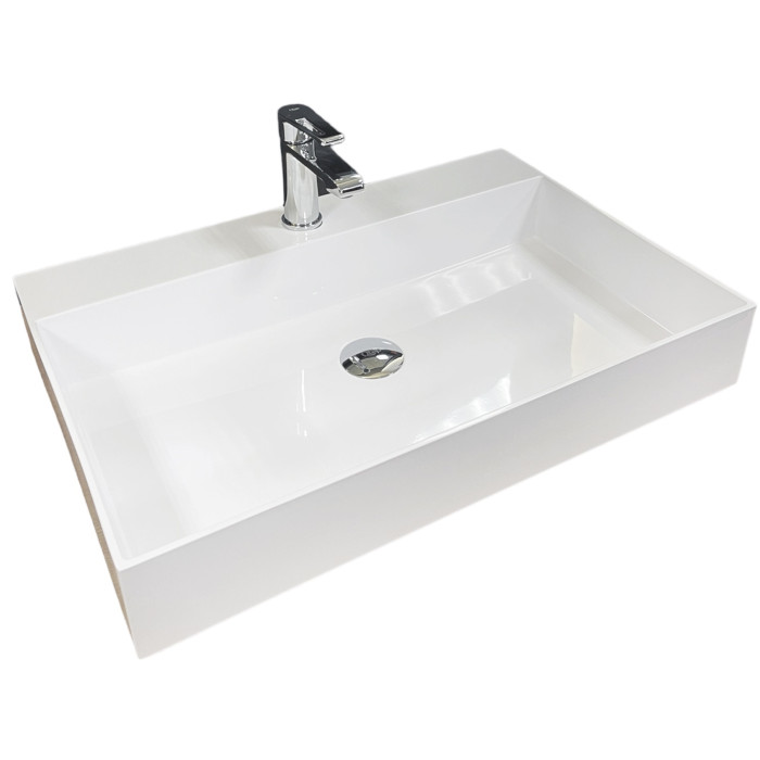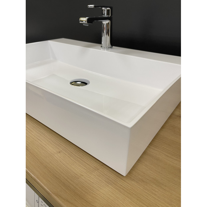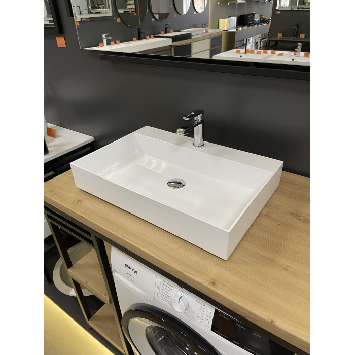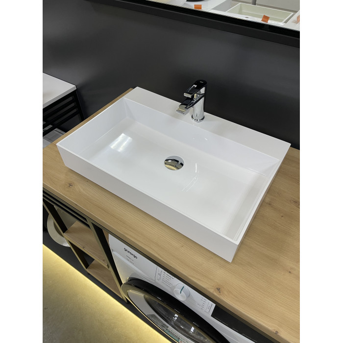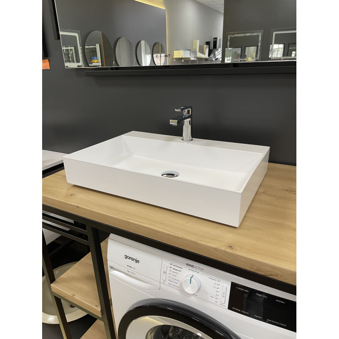 Раковина, умивальник Adamant SLENDER, штучний камінь, прямокут., з отвором для змішувача, без переливу, 605x405x120мм, накладний, білий
