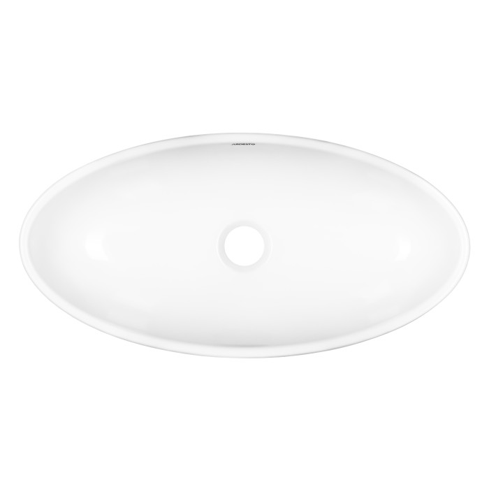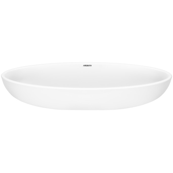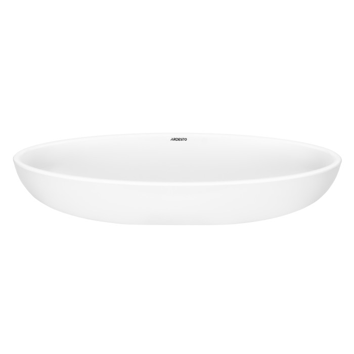 Раковина, умивальник ARDESTO Madeleine, штучний камінь, овальна, без отвору для змішувача та переливу, 590х295х130мм, накладний, білий