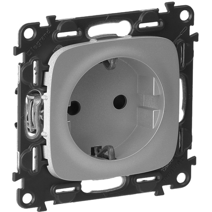 Силова розетка 2К + З із захисними шторками - безгвинтові затискачі - лицьова панель Valena Allure - 16 А - 250 В ~ - алюміній. Силова розетка німецького стандарту 2К + З, 16 А - 250 В ~ Використовуються з рамками Valena Allure