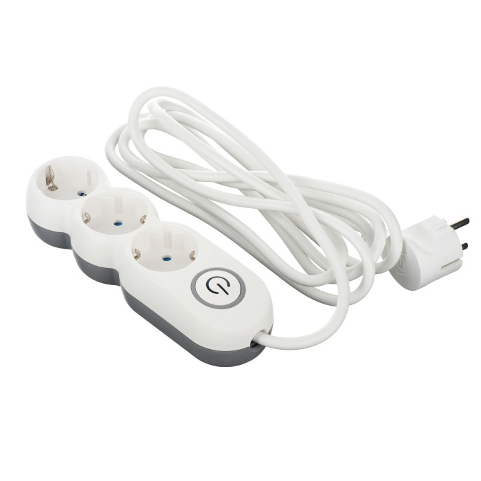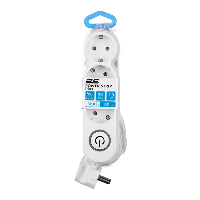 Удлинитель сетевой 2E Plus 3хТип F, 3х1мм кв, 10A, 3м, бело-серый 2E-U03VES3M