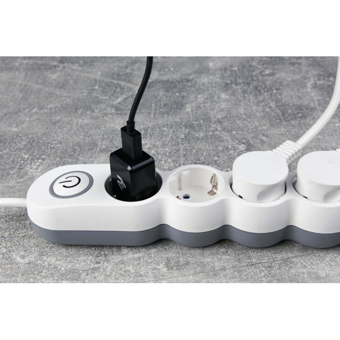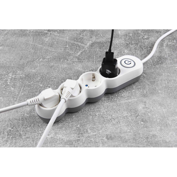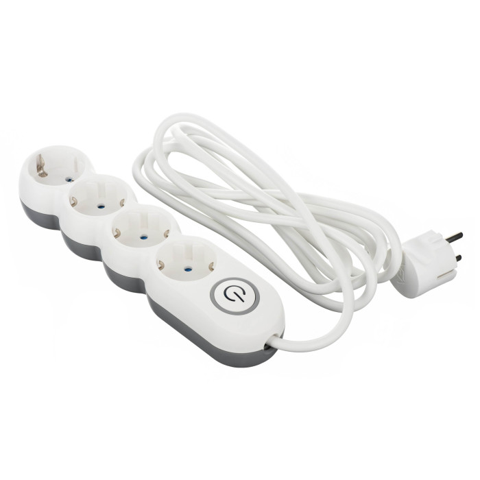Удлинитель сетевой 2E Plus 4хТип F, 3х1мм кв, 10A, 3м, бело-серый 2E-U04VESM3W