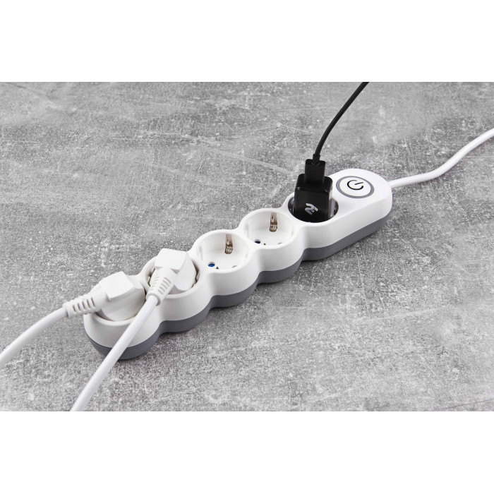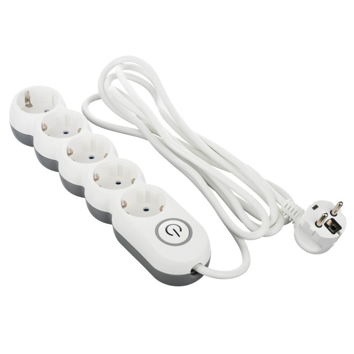 Удлинитель сетевой 2E Plus 5хТип F, 3х1мм кв, 10A, 3м, бело-серый 2E-U05VESM3W