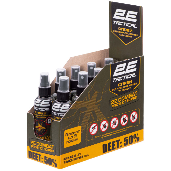 Спрей от комаров, клещей и мошек 2E Combat Protect 50 Pro, 100 мл - 10 шт