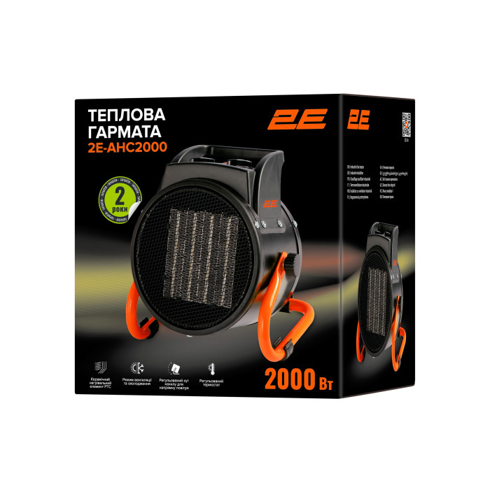 Тепловая пушка 2E-AHC2000 наполнит помещение теплом как только она будет подключена к источнику питания. Она неприхотлива в размещении, проста в управлении и безопасна в эксплуатации.