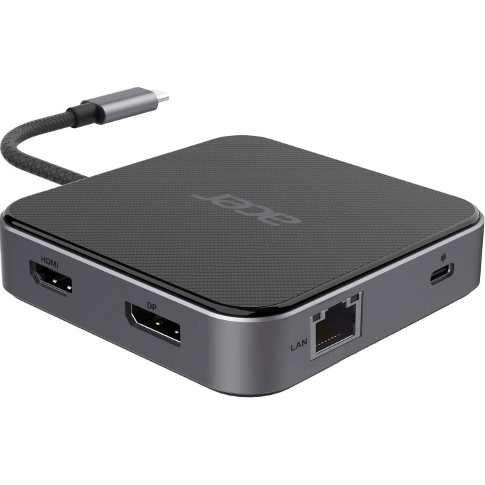 Acer Хаб USB-С > HDMI/DP/2xUSB-A3.2/USB-C/RJ45/mini-jack, 0.15м, чорний