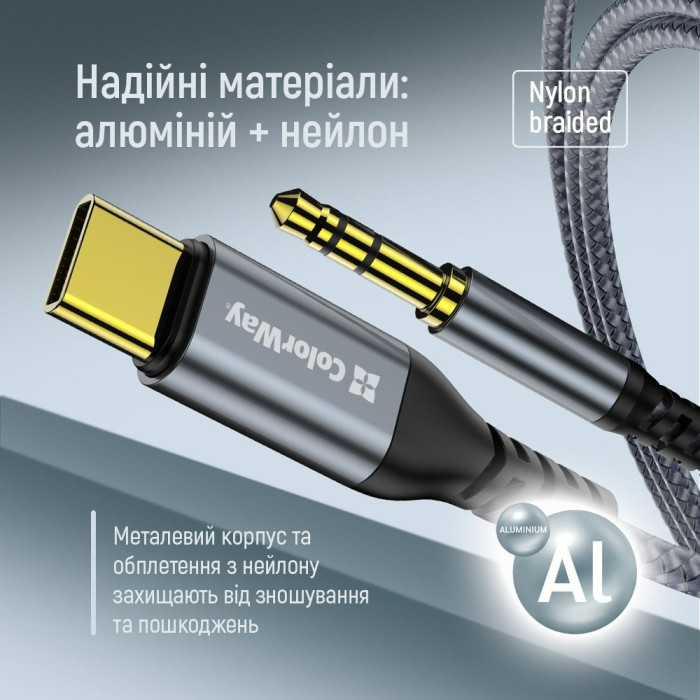 Адаптер ColorWay USB Type-C - 3.5 мм (M/M), 1.2 м, Gray (CW-CBPDJ071-G)