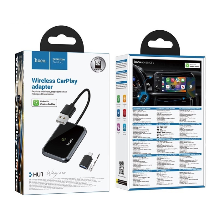 Цей інноваційний пристрій HOCO HU1 Way car wireless CarPlay adapter забезпечує бездротове підключення смартфона до автомобільної мультимедійної системи. Завдяки підтримці WiFi та Bluetooth, адаптер гарантує швидке та стабільне з'єднання, дозволяючи вам насолоджуватися всіма перевагами Apple CarPlay без необхідності використовувати кабелі.Цей адаптер дозволяє легко отримувати доступ до навігації, музики, дзвінків та повідомлень прямо з екрана вашого автомобіля. Стильний чорний дизайн робить його непомітним та витонченим доповненням до інтер'єру будь-якого автомобіля. Простота встановлення та використання робить адаптер ідеальним вибором для тих, хто цінує комфорт та сучасні технології в дорозі.СУМІСНІСТЬСумісний з iPhone 6 і вище, а версія програмного забезпечення – iOS 10 та вище.