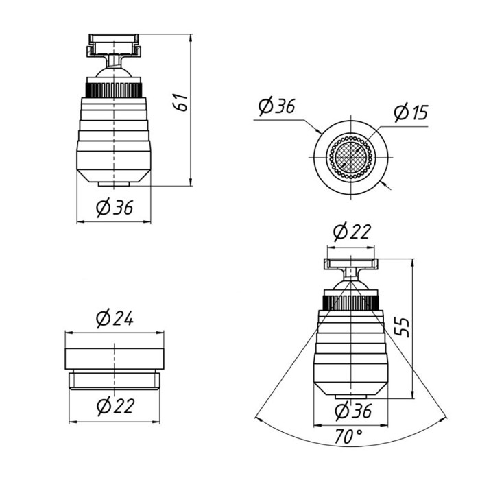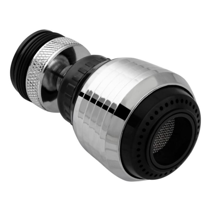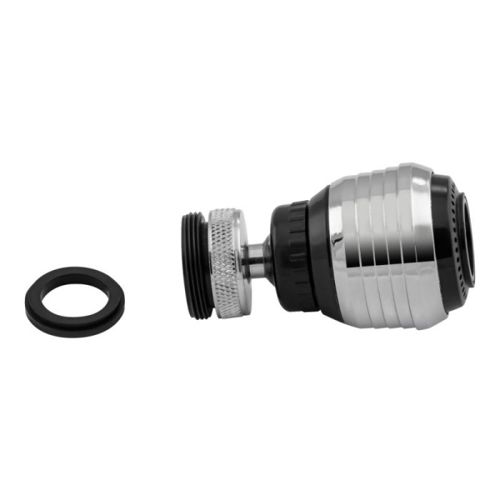 Аератор для змішувача Kroner KRM - C932 з двома режимами, призначений для розпилення водного потоку, за рахунок цього економія води досягає від 30 до 70%. Насадка має металевий шарнірний механізм, який дозволяє керувати струменем в будь-який бік на 360 градусів. посуду, захоплюючи всі кути та сторони раковини. У комплекті перехідник, за допомогою якого аератор можна встановити на будь-який стандартний змішувач, який має зовнішнє різьблення 22 мм або внутрішнє різьблення 24 мм..Насадку можна використовувати без шарнірної конструкції, тобто. як звичайний аератор. Внутрішнє різьблення у аератора дозволяє вкрутити той же перехідник різьблення, який вкручений шарнірний перехідник. Водозберігаючий аератор води виконує 3 основні функції: фільтрування води від великих частинок за допомогою сітки; збільшення тиску та зменшення об'єму потоку води; поділ струменя та насичення його повітрям.
