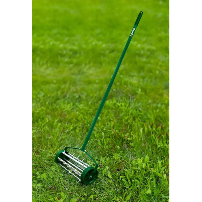 Ручний аератор та роликовий скарифікатор для трави Verto 15G539 – незамінний інструмент у нашому саду. Компактна гвинтова конструкція забезпечує оптимальну жорсткість та комфорт роботи. Аератор оснащений роликом із 27 шипами та зручними колесами, які ще більше полегшують догляд за травою в саду або на газоні.