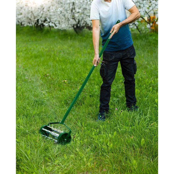 Ручний аератор та роликовий скарифікатор для трави Verto 15G539 – незамінний інструмент у нашому саду. Компактна гвинтова конструкція забезпечує оптимальну жорсткість та комфорт роботи. Аератор оснащений роликом із 27 ши... Читать далее...