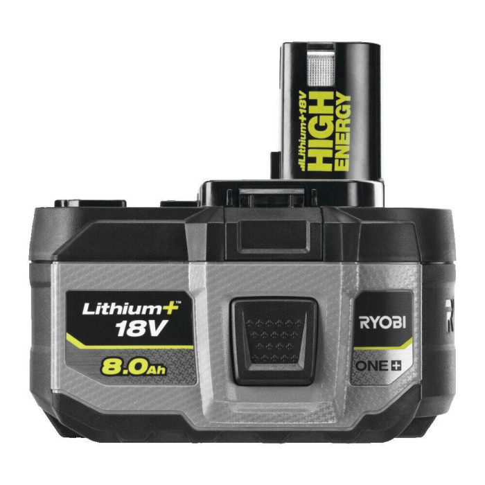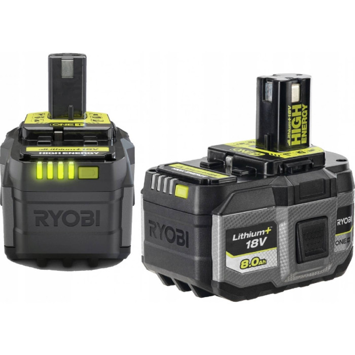 Потужний акумулятор Ryobi RB1880T High Energy Lithium+ ємністю 8.0 А·год забезпечує в 3 рази більше часу роботи та на 20 % більше потужності порівняно з попередніми літієвими технологіями Ryobi. Акумуляторні елементи високої потужності виділяють до 25% менше тепла під час використання потужних пристроїв, що збільшує час роботи.