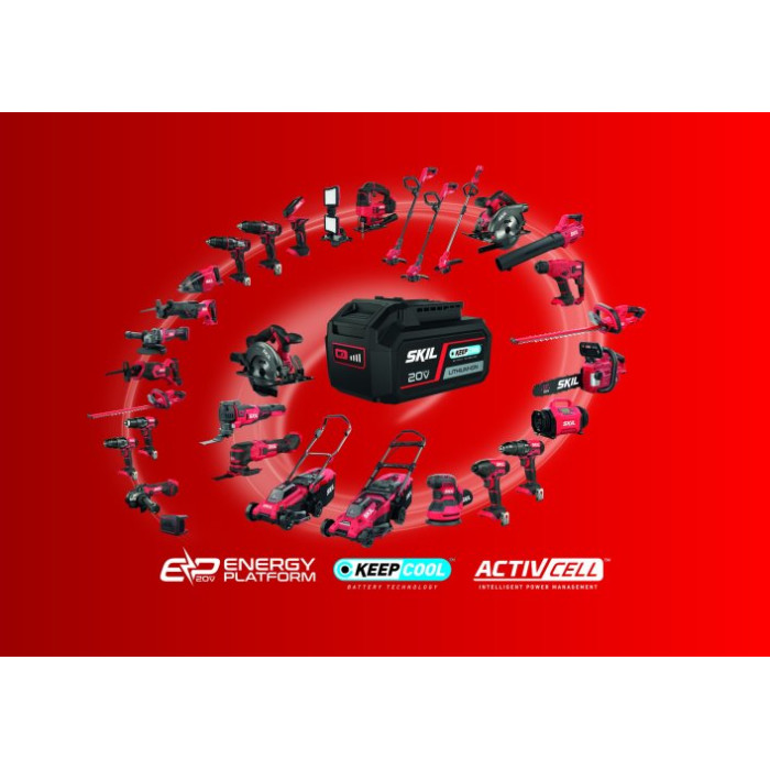 Ця потужна батарея SKIL 20V Max ємністю 4 А*год зі світлодіодним індикатором рівня заряду входить до лінійки акумуляторної платформи SKIL PWRCORE 20™ та оснащена літій-іонною технологією, яка забезпечує відсутність ефекту пам'яті, відсутність саморозряду та постійну готовність до використання.