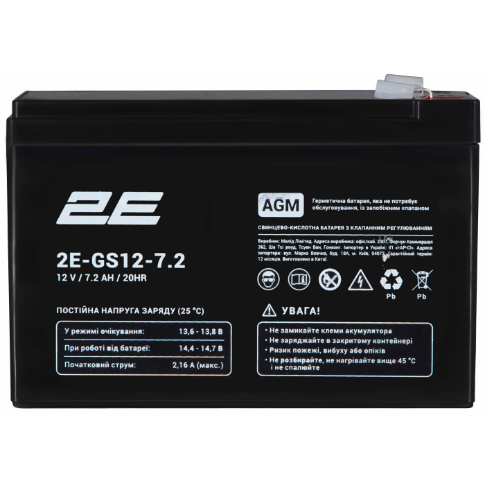 Аккумуляторная батарея 2E GS, 12В, 7.2А•ч, AGM