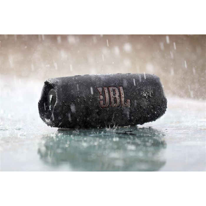 Charge 5 має ступінь захисту від вологи і пилу IP67. Колонку можна на 30 хвилин занурювати в воду на глибину до 1 метра. Вона надійно захищена від піску і ідеально підійде для походу на пляж.