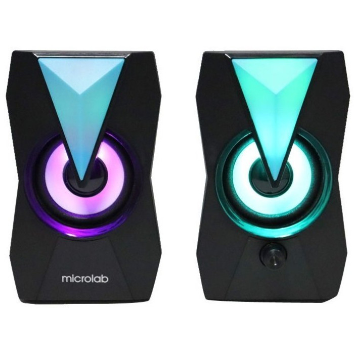 Компактна стереосистема для тих, хто перебуває в русі, користується мобільними пристроями та любить слухати музику. Динаміки мають сучасний стиль, який буде до вподоби кожному хто полюбляє грати в ігри. Корпус виконаний із спеціального акустичного пластику, що сприяє зниженню внутрішнього резонансу та спотворень. Акустична система має RGB підсвітку, яка переливається всіма кольорами веселки.