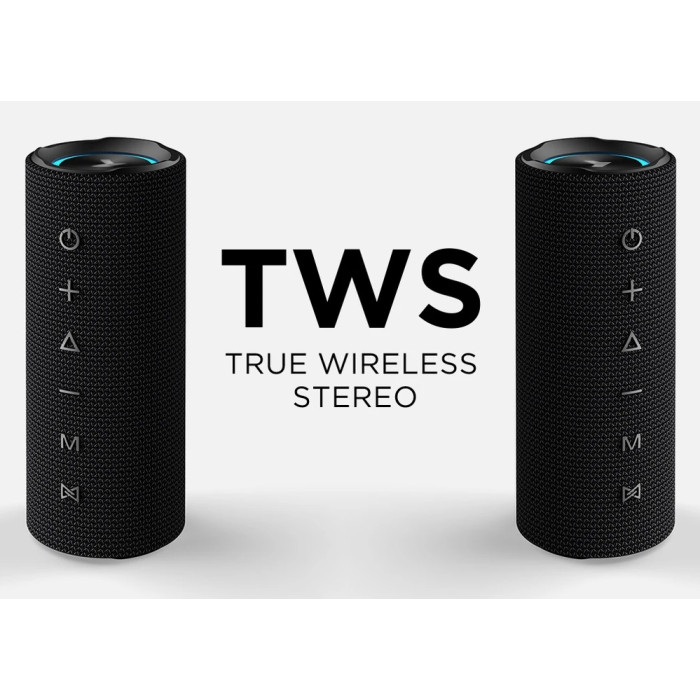 Pixus RING підтримує функцію TWS (бездротова стереопара). Ви легко можете об’єднати дві колонки перетворивши їх в портативну стереосистему потужністю 40 Вт та звуком в 360°. Для того, щоб об’єднати колонки, на обох колонках натисніть найнижчу кнопку для входу до режиму TWS. Після успішного підключення LED індикатор L-каналу стане синім, а R-каналу – білим. Більш детальна інформація знаходиться в комплектній інструкції. Насолоджуйтеся стереозвуком разом з колонками Pixus RING!