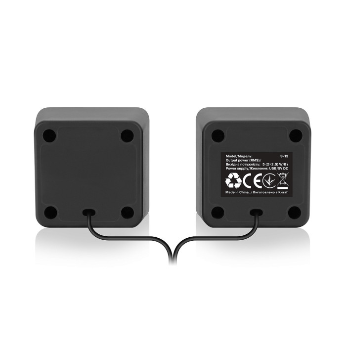 REAL-EL S-13 – компактне та просте рішення для щоденного використання. Мультимедійна USB-акустична система REAL-EL S-13 – це легке та доступне рішення для відтворення звуку з комп’ютера чи ноутбука. Завдяки компактному дизайну колонки займають мінімум місця та ідеально підходять для невеликих робочих столів.