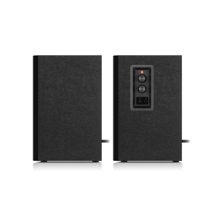 REAL-EL S-415 забезпечує чисте та насичене звучання завдяки двосмуговій системі, яка відтворює як високі, так і низькі частоти з максимальною деталізацією. Корпус із дерева (MDF) підсилює акустичні властивості, створюючи відчуття природного, потужного звуку. Система підтримує безпровідне підключення по Bluetooth і має провідний роз’єм 3.5 мм для зручного підключення до різних пристроїв. Додатково передбачено роз’єм для навушників із автоматичним перемиканням режиму, а регулятор низьких частот дозволяє легко налаштувати глибину басів.
