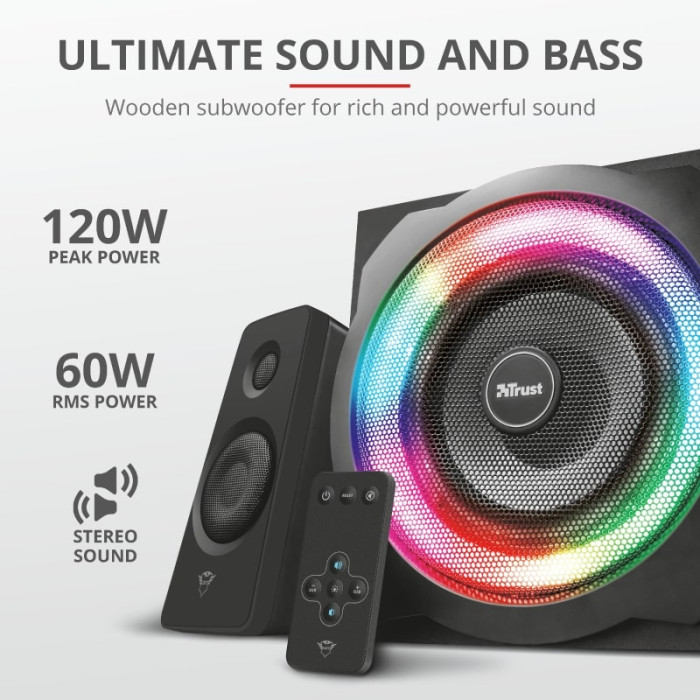 Акустична система Trust GXT 629 Tytan 2.1, 60Вт, AUX, RGB, чорний