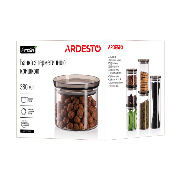 ARDESTO Банка для зберігання Fresh, 380 мл, скло, пластик, силікон
