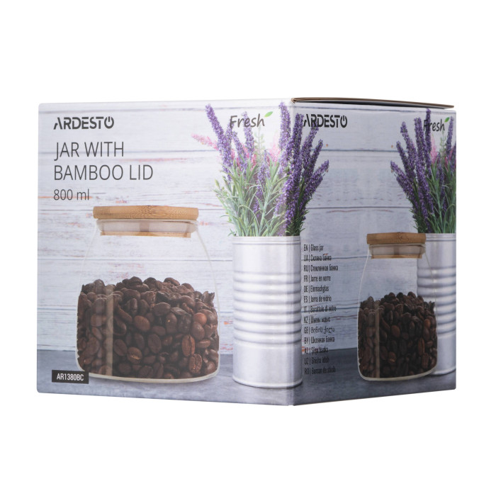 ARDESTO Банка для зберігання Fresh Classic 800 мл, скло, бамбук