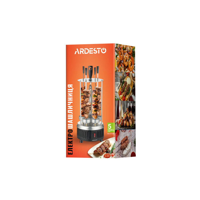 ARDESTO Электрошашлычница VEG-HY1000, 900 Вт, 5 шампуров, вращение 360, U-образные нагреватели, алюмин. кожух