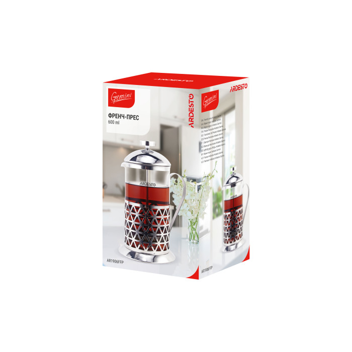 ARDESTO Френч-прес Gemini Fasano, 600 мл, нержавіюча сталь, скло