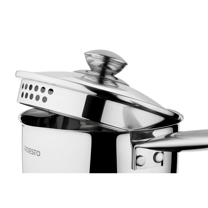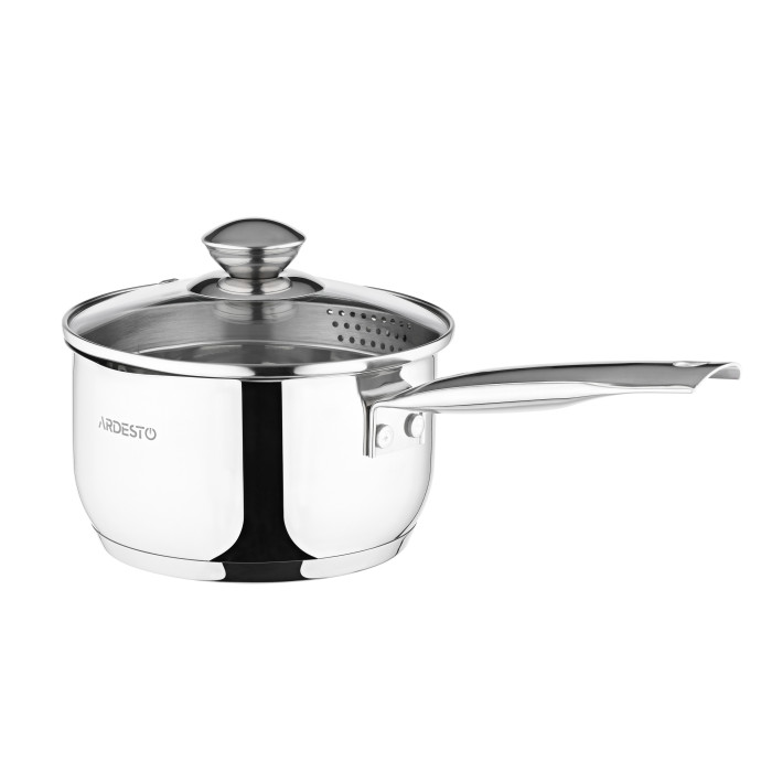 Ковш со стеклянной крышкой и сливом Ardesto Gemini Lecco, 1.8л, нержавеющая сталь [AR2818SS]