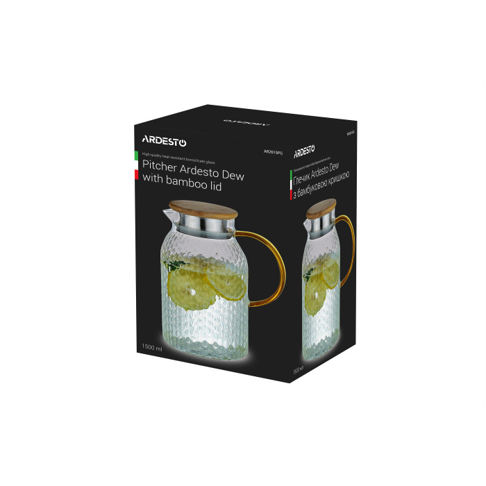 ARDESTO Глечик Dew з бамбуковою кришкою, 1500 мл, боросилікатне скло, нержавіюча сталь