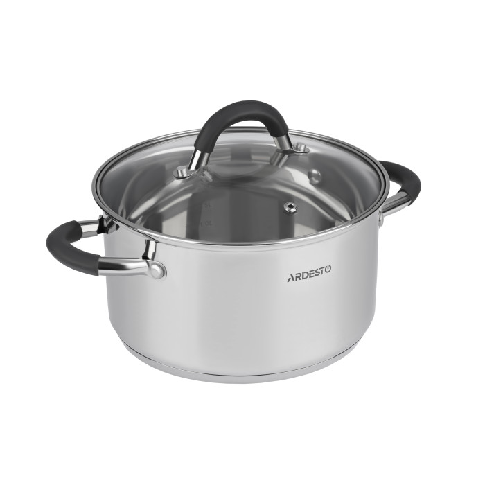 Кастрюля со стеклянной крышкой Ardesto Gemini Salerno, 3.4л, нержавеющая сталь, силикон AR1936CS