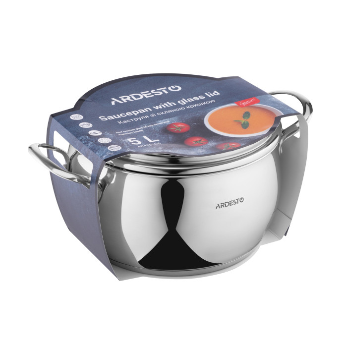 Кастрюля со стеклянной крышкой Ardesto Gemini Liguria, 5л, нержавеющая сталь AR4350GB