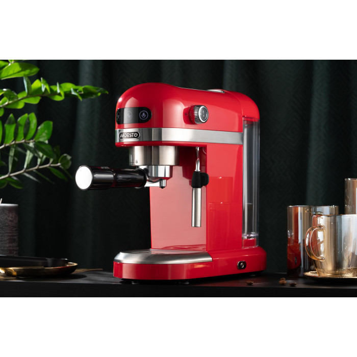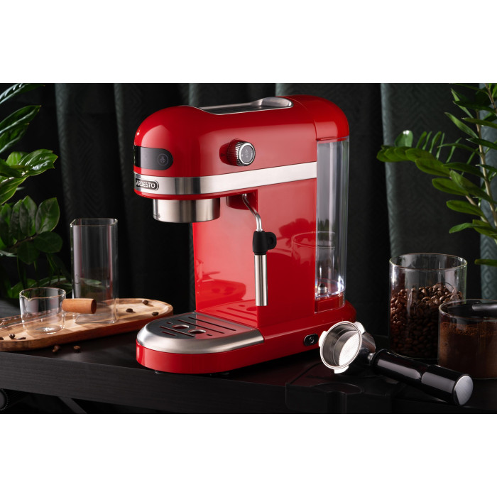 Взбодриться с утра поможет рожковая кофеварка ARDESTO YCM-E1501, выполненная в ярком красном цвете она удачно подчеркнет экстравагантный стиль владельца. Модель может похвастаться мощностью (1 350 Вт) и хорошими техническими особенностями, среди которых: большая емкость резервуара для воды, капучинатор, цифровой термостат для контроля температуры заваривания, функция предварительного замачивания кофе и т.д.