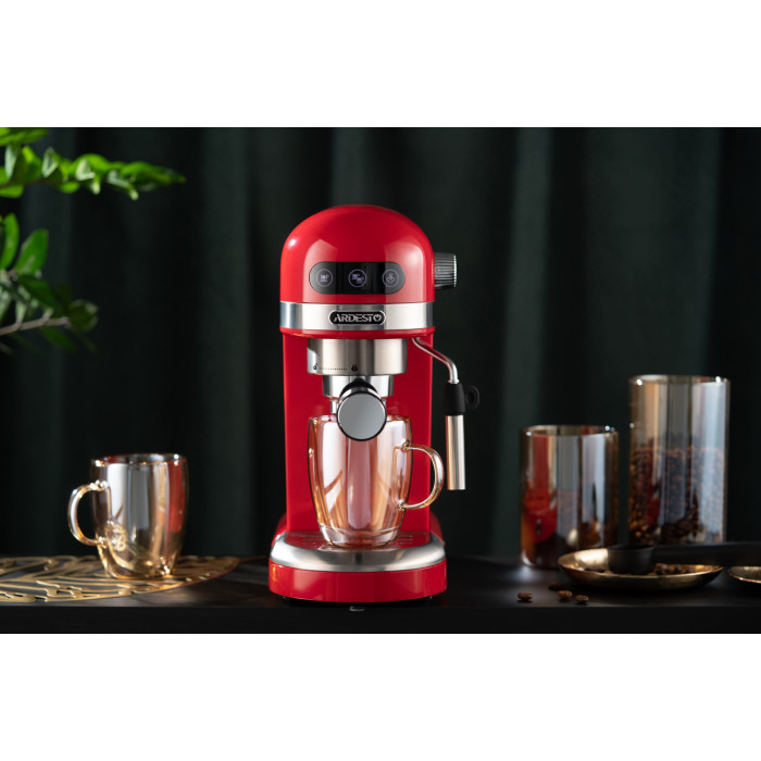 ARDESTO Кофеварка YCM-E1501 - эспрессо рожковая/1.4 л/итал. помпа 20 бар/сенсор. панель/PID контроль/1350 Вт/красная