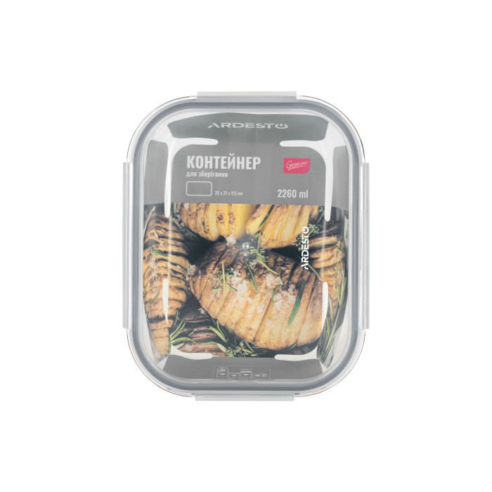 ARDESTO Контейнер для зберігання Gemini 2260 мл, прямокутний, боросилікатне скло