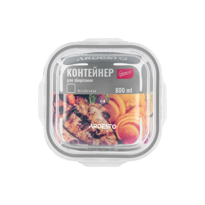 ARDESTO Контейнер для зберігання Gemini 800 мл, квадратний, боросилікатне скло