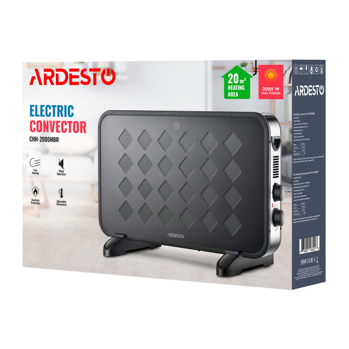 Конвектор ARDESTO, 20м2, 2000Вт, механическое управление, открытый нагревательный элемент, черный CHH-2000MBR