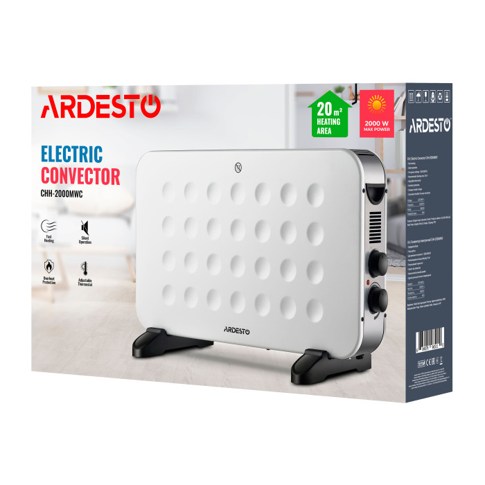 Конвектор ARDESTO, 20м2, 2000Вт, механическое управление, открытый нагревательный элемент, белый CHH-2000MWC