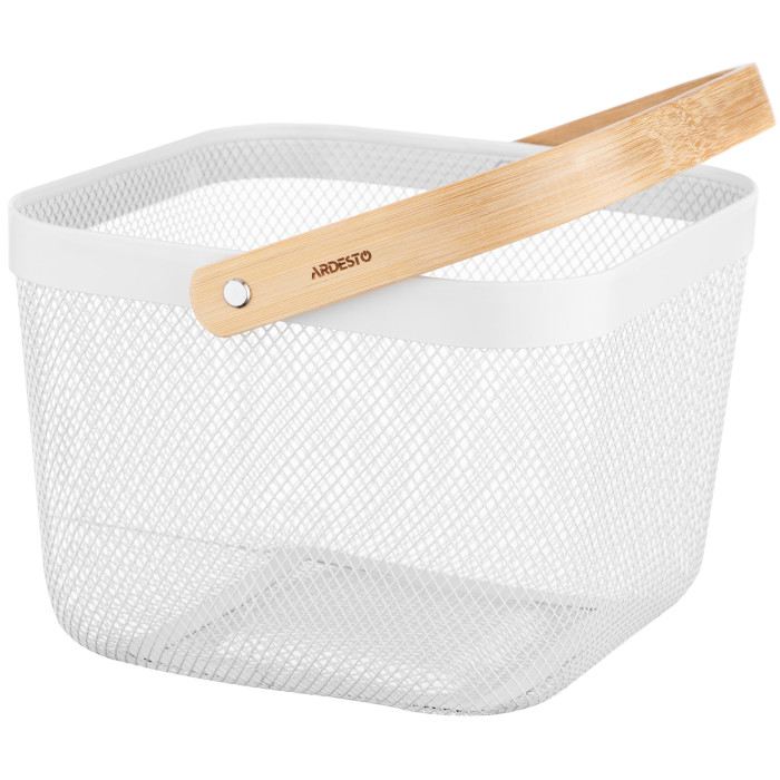 Корзина с ручкой Ardesto Midori 25х24.5х18см, металл, дерево, белый