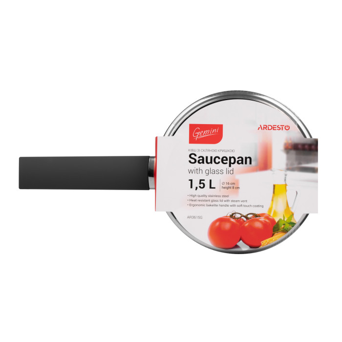 ARDESTO Ківш Gemini, скляна кришка, 1.5 л, нержавіюча сталь