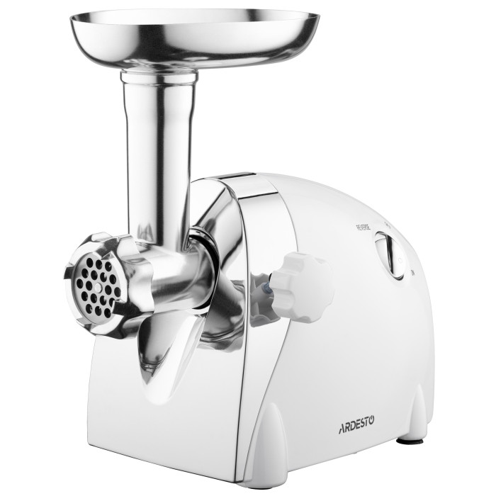 ARDESTO М'ясорубка, 2000Вт, продук.-1.9кг/хв, 3 решітки + для ковб., кеббе, 3 терки, пластик, біло-сріблястий