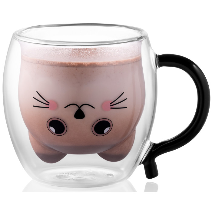 ARDESTO Набір чашок з ручками Animals з подвійними стінками, 250 мл, 2 од., боросилікатне скло