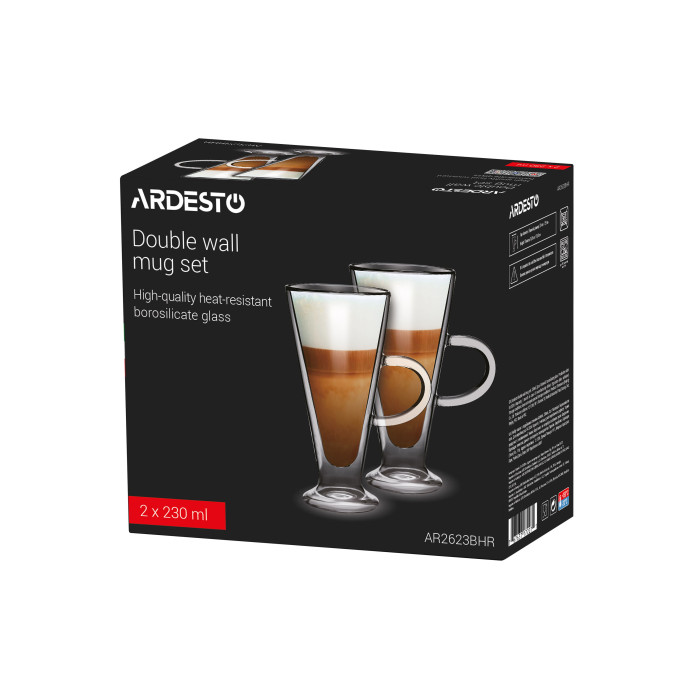 ARDESTO Набір чашок із ручками з подвійними стінками, 230 мл, H 15,8 см, 2 шт, боросилікатне скло