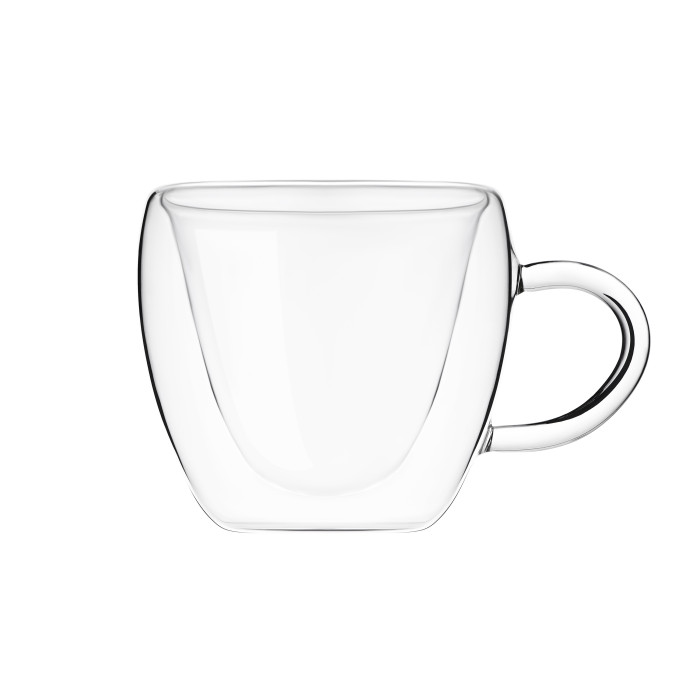 Набір чашок з подвійними стінками. До набору входять дві чашки об’ємом по 300 мл. Чашки виготовлено з термостійкого боросилікатного скла.