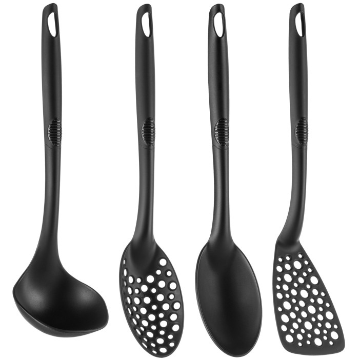 У наборі ARDESTO Gemini Gourmet містяться чотири необхідні предмети: ополоник, ложка, лопатка та шумівка. Аксесуари стильного чорного кольору, виготовлені з високоякісного пластику, можна мити в посудомийній машині.