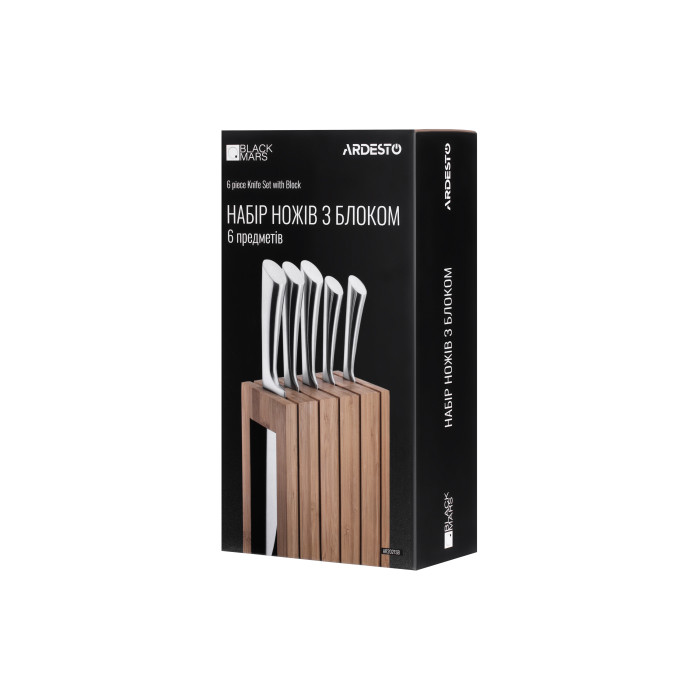 ARDESTO Набір ножів Black Mars 6 пр., нержавіюча сталь, бамбуковий блок