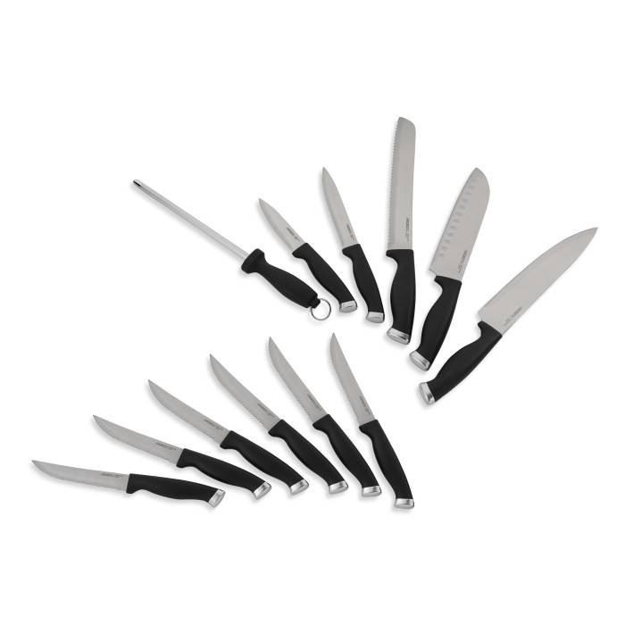 Набір складається з одинадцяти ножів серії Gemini Gourmet, кухонних ножиць, точила і блок з каучукового дерева. Леза ножів виготовлені з нержавіючої сталі 3CR13, а ручки з пластика з ABS cap. Леза ножиць виготовлені з нержавіючої сталі 2CR13.