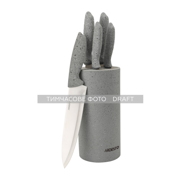 ARDESTO Набір ножів з блоком Gemini, 6 предметів, нержавіюча сталь, пластик, сірий