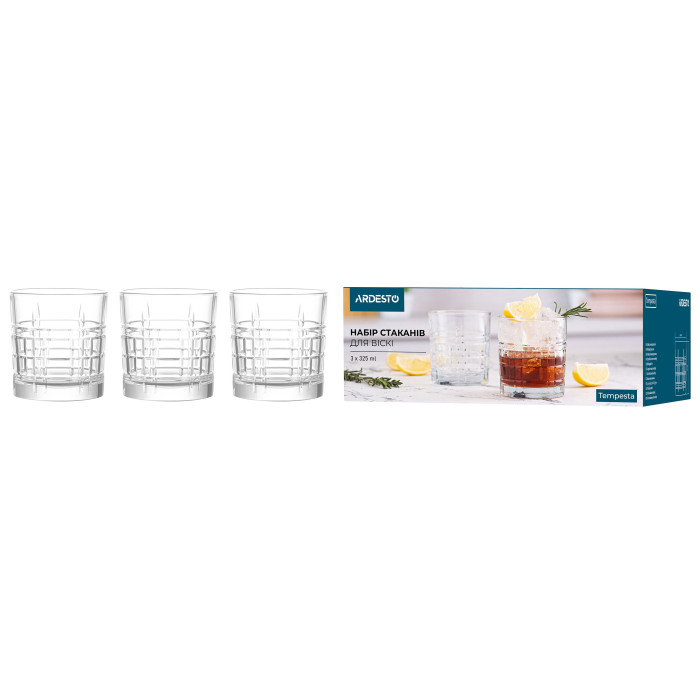 ARDESTO Набір склянок для віскі Tempesta 325мл, 3шт, скло, прозорий