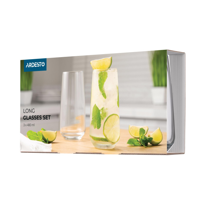 ARDESTO Набір склянок високих Gloria Shine 480 мл, 3 шт., скло