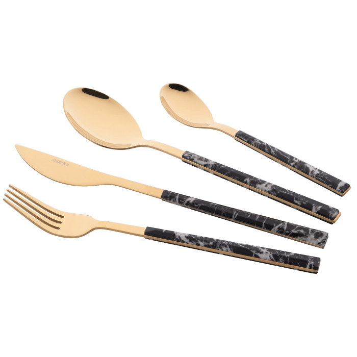 ARDESTO Набір столових приборів Gemini Marmo, 16 приборів, нержавіюча сталь, пластик, золотисто-чорний
